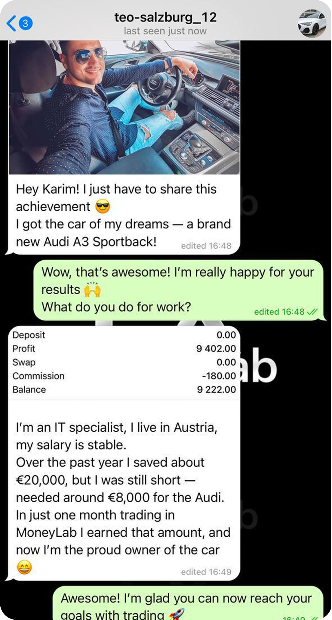 This is Teo from Salzburg. In just one month,he grew his savings by almost 45% and decided to buy a car.“Teo, next year I’ll be waiting for a picture of the car you get for your wife!