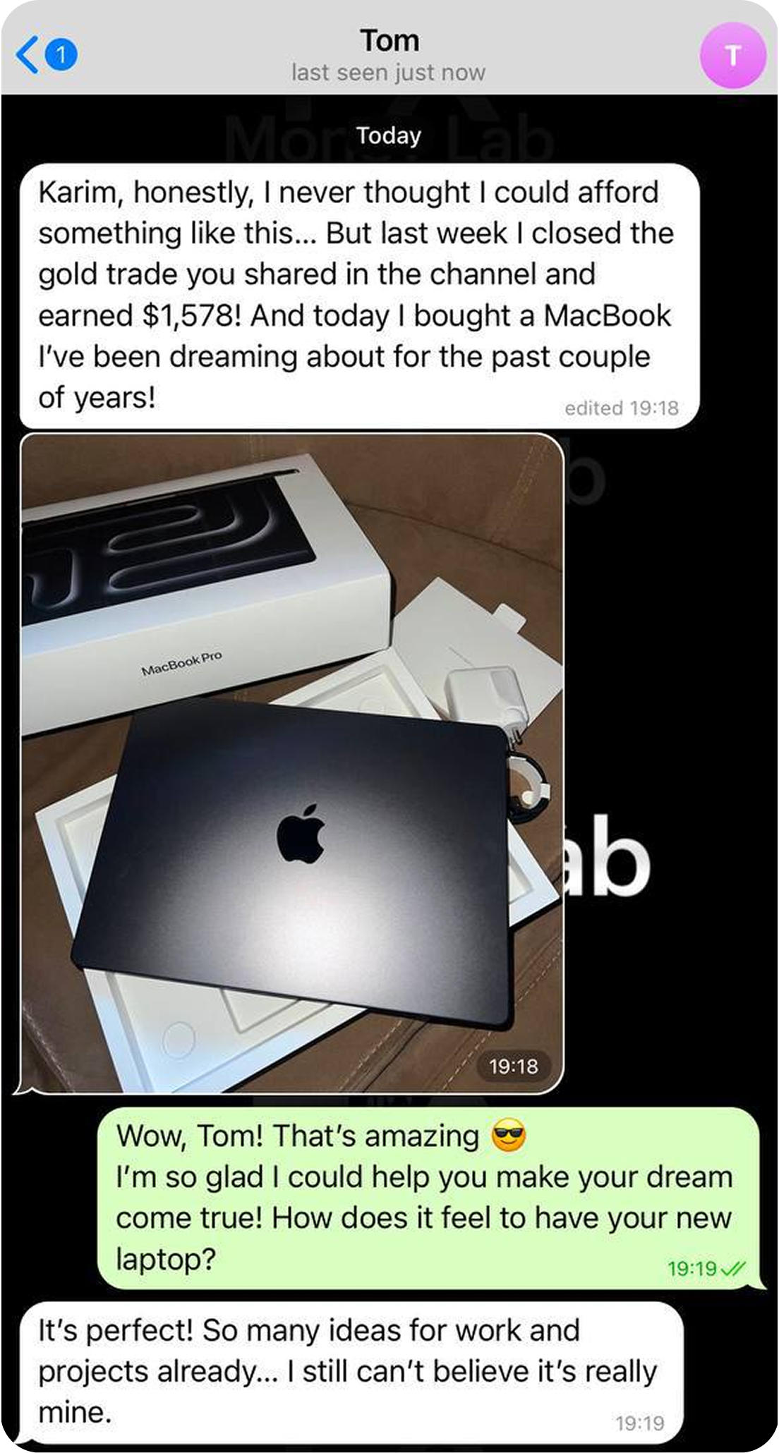 Tom from the UK earned enough for a brand-new MacBook last week trading Gold."Hopefully, you’ll be using it for trading, Tom